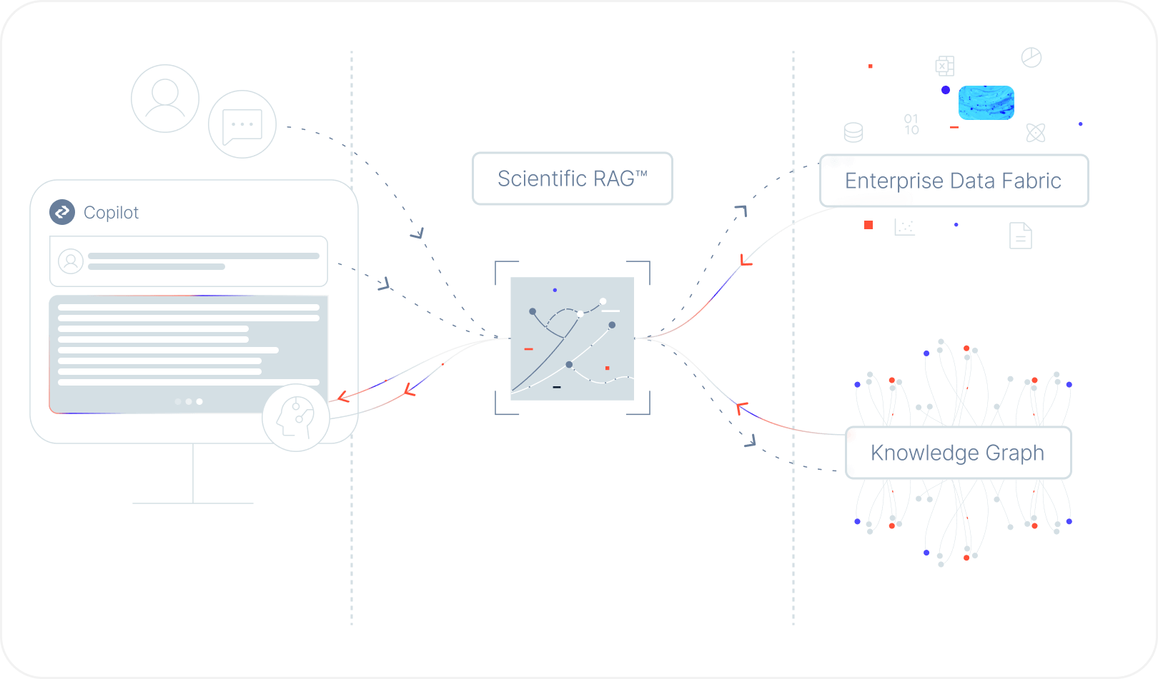 Icobber’s Scientific RAG™ hybrid ranking technology draws on a scientific knowledge graph to ensure the reference material used for answer generation is complete and relevant.
